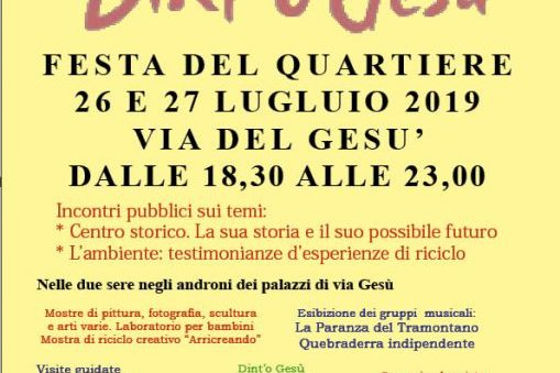 L’associazione Socio Culturale “l’Incrocio delle Idee” ha organizzato per il 26 e 27 luglio una iniziativa denominata “Dint’o Gesù”…