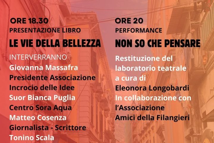 All’interno dell’iniziativa “Dint’ o Gesù”, organizzato con l’associazione Gli amici della Filangieri, l’associazione Socio Culturale l’Incrocio delle Idee, presenterà, sabato 22 giugno 2024, il libro “Le vie della Bellezza” (Utopia edizioni).