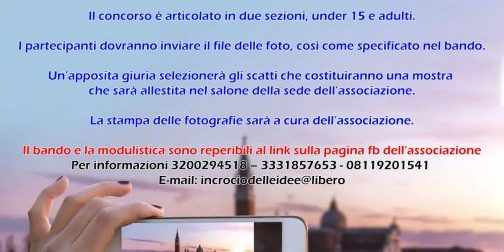 E’ il tema del concorso fotografico indetto dall’Associazione Socio Culturale l’Incrocio delle Idee riservato a fotografi non professionisti e riguarda scatti fotografici da realizzare esclusivamente con cellulari o tablet.