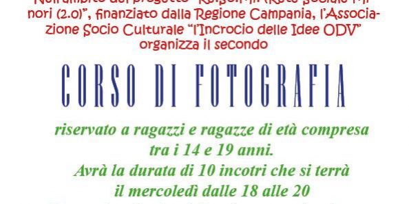 Sono aperte le iscrizioni per partecipare al secondo corso di fotografia inserito nel progetto RE.SO.MI. (Rete Sociale Minori), progetto nel quale sono contemplate una serie di attività gratuite grazie al finanziamento ottenuto dalla Regione Campania con risorse statali del Ministero del Lavoro e delle Politiche Sociali.